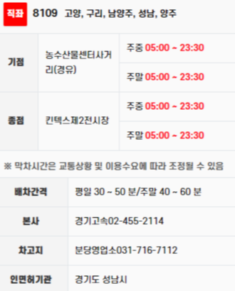 ■ 성남버스 8109번 버스 운행 정보