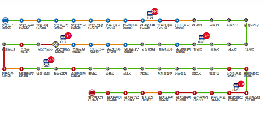 운중초등학교 07:20, 07:30, 07:40, 07:50