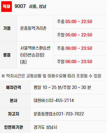 ■ 성남버스 9007번 버스 운행 정보