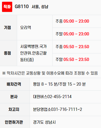 | 성남 9507번 직행좌석버스(판교대장로동측 <-> 청담초등학교앞) 기점 종점 노선 배차간격 차고지 전화번호 (3) | 2023.04.09 |