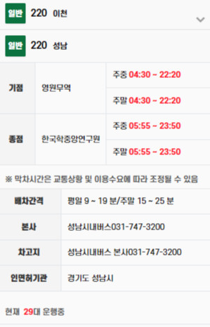 ▣ 성남 220번 버스 운행 정보