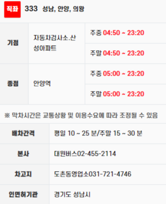 ■ 성남버스 333번 버스 운행 정보