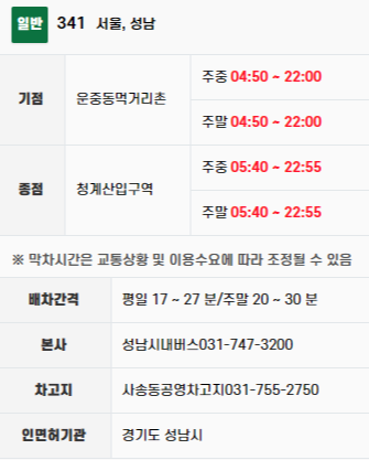 | 성남 342번 버스(영원무역 <-> 청계산옛골) 기점 종점 노선 배차간격 차고지 전화번호 (0) | 2023.04.07 |