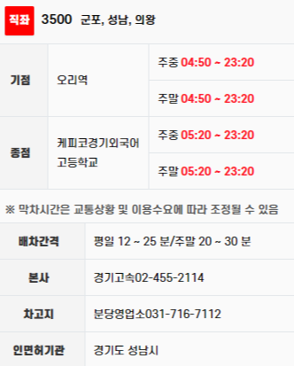 ■ 성남버스 3500번 버스 운행 정보